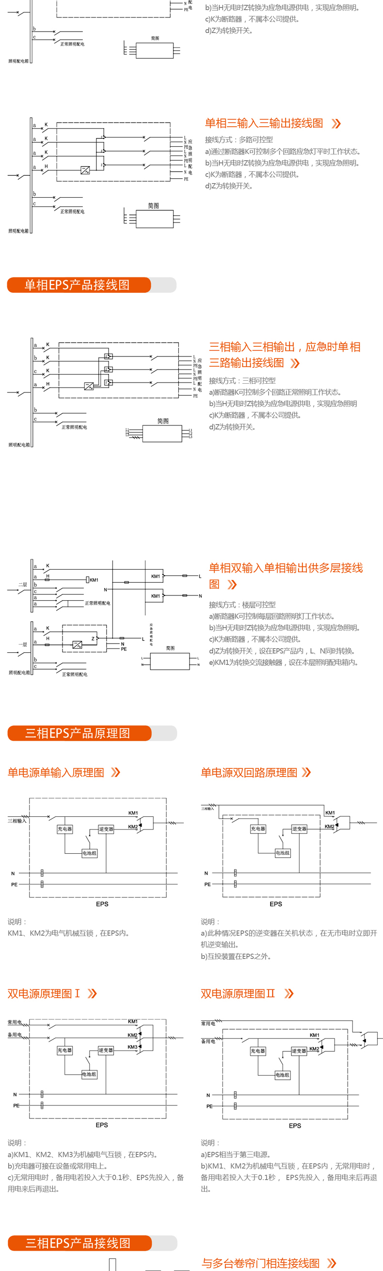 (6)對(duì)于某些功率較大的用電設(shè)施,如:消防水泵、風(fēng)機(jī),EPS可直接與電機(jī)相聯(lián)變頻啟動(dòng)后,再進(jìn)入正常運(yùn)行狀態(tài);